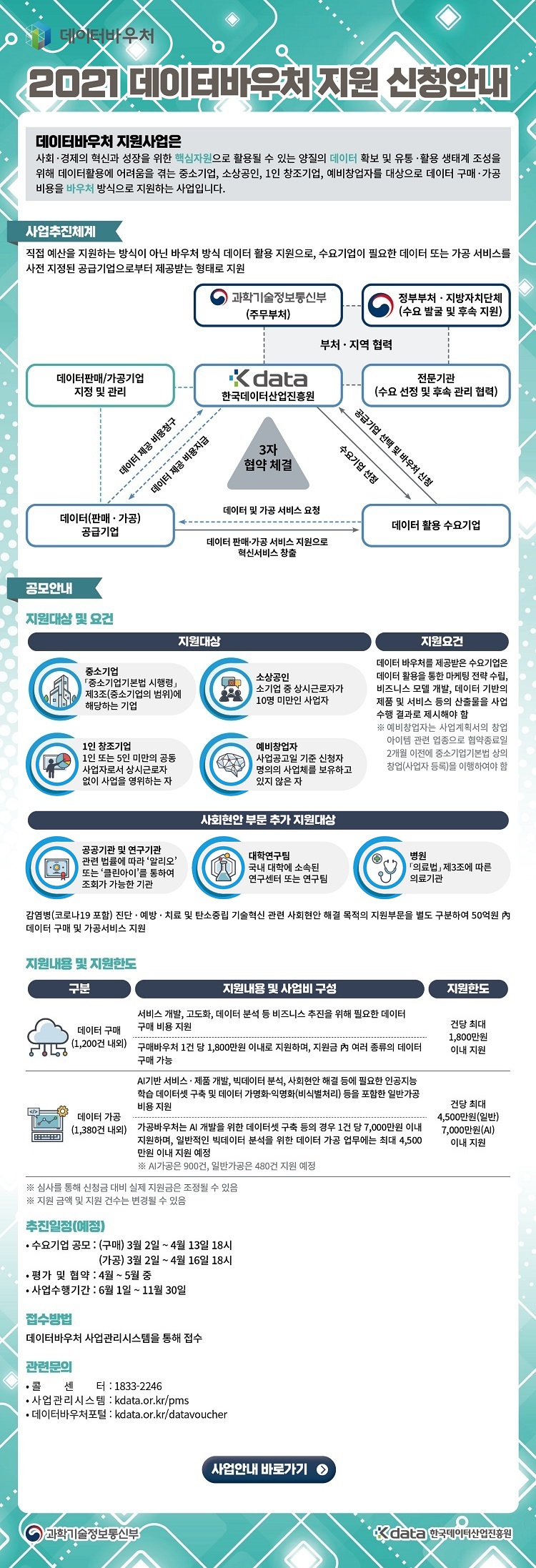- [한국데이터산업진흥원] 「2021년 데이터바우처 지원사업」사회현안 해결부문 공모 안내