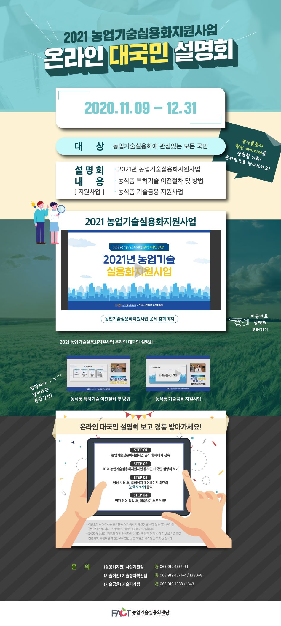 - [일반공지] [농업기술실용화재단] 2021년 농업기술실용화지원사업 온라인 대국민설명회 개최 안내