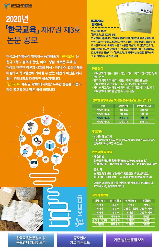 - [한국교육개발원] 등재학술지 한국교육 제47권 제3호 게재논문 공모 안내