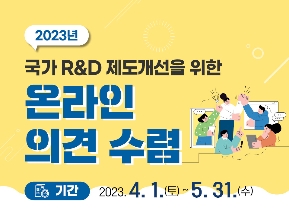 - (한국과학기술기획평가원) 2023년도 국가 R&D 제도개선 온라인 의견수렴 홍보
