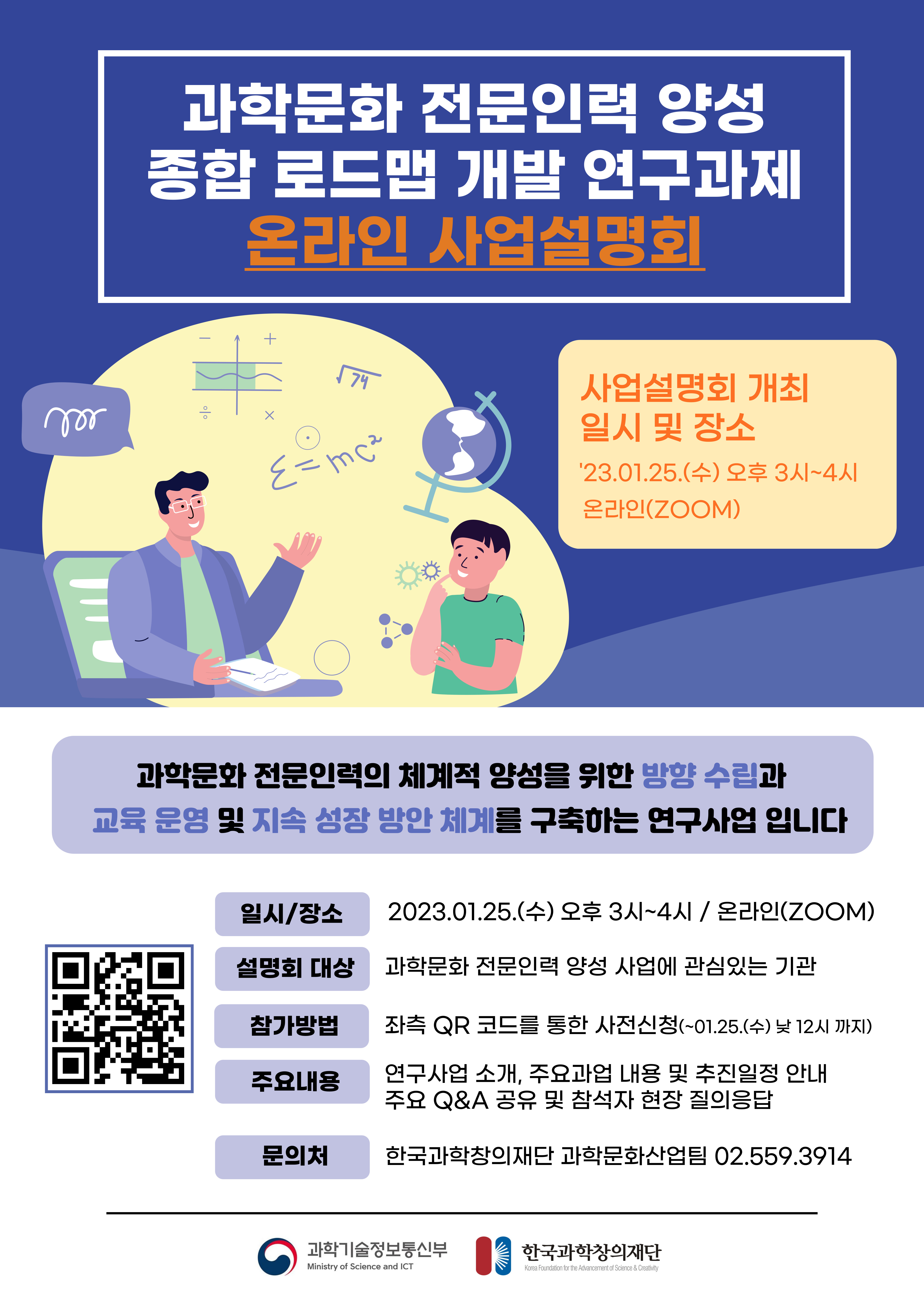 - [일반공지] (한국과학창의재단)과학문화 전문인력 양성 종합 로드맵 개발 연구과제