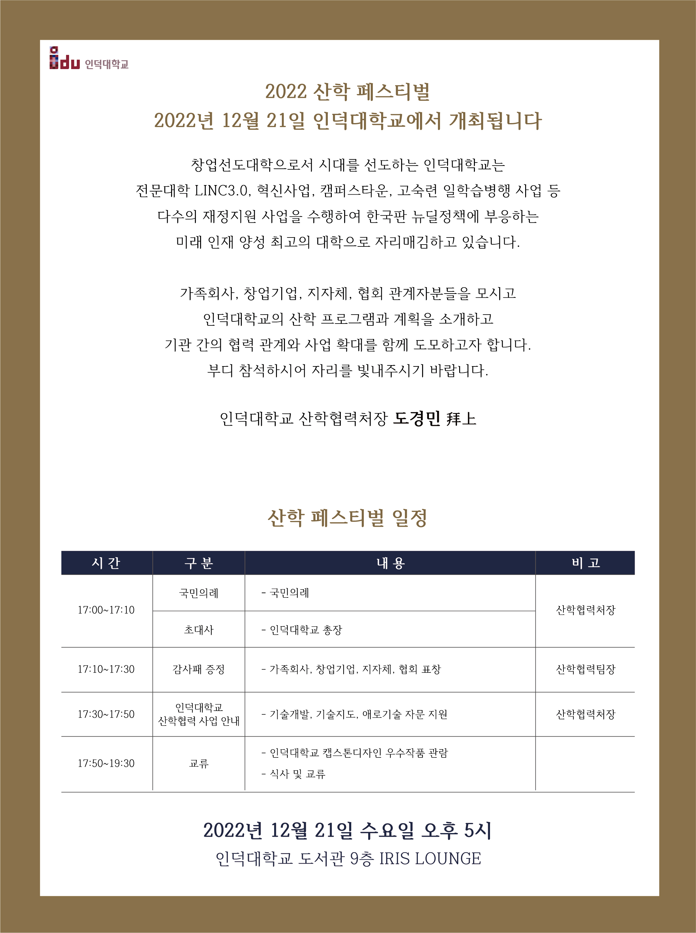 - [일반공지] [인덕대학교] "2022 산학 페스티벌" 개최 안내