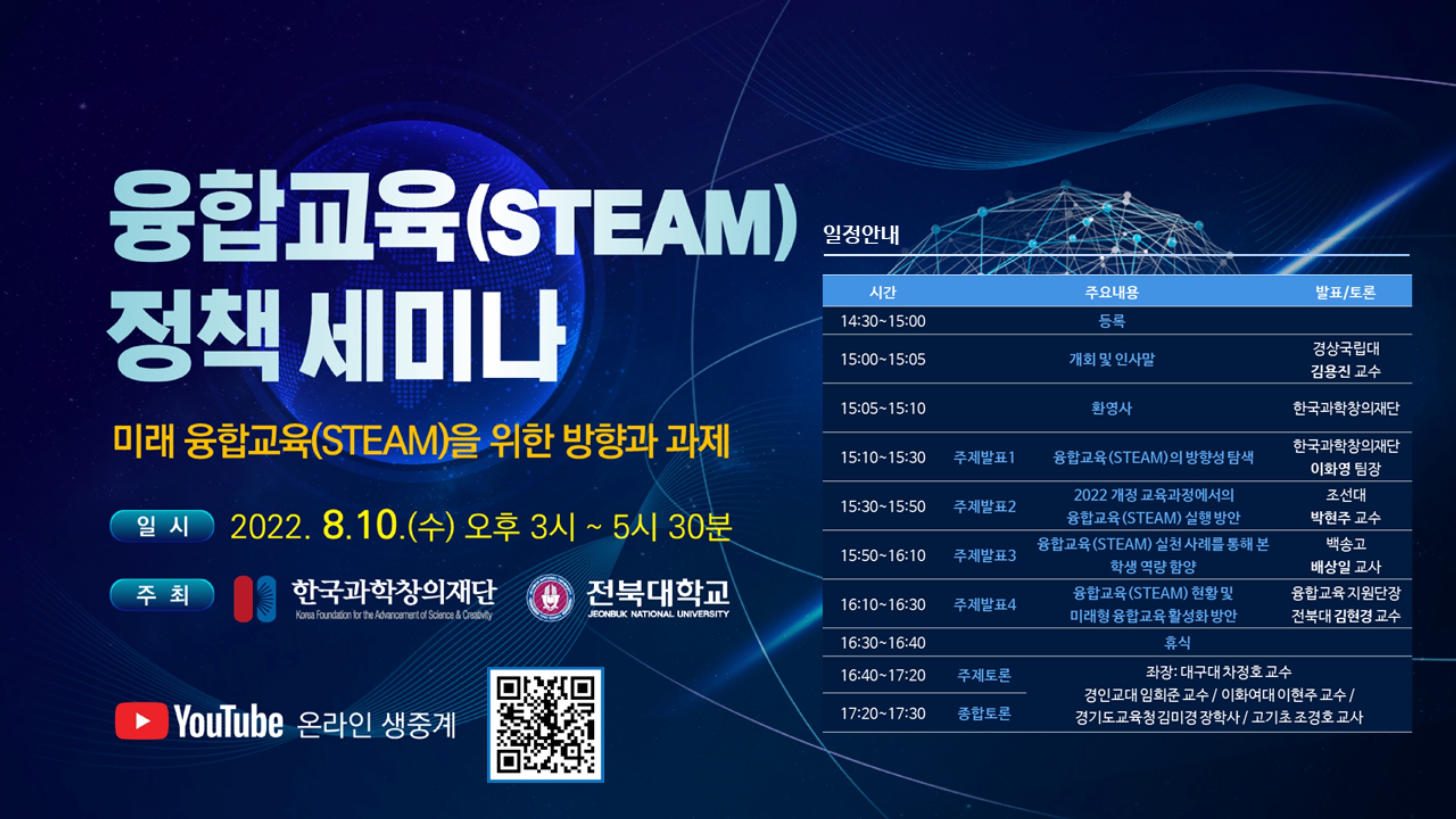 - [한국과학창의재단] 융합교육(STEAM) 정책 세미나 개최 안내