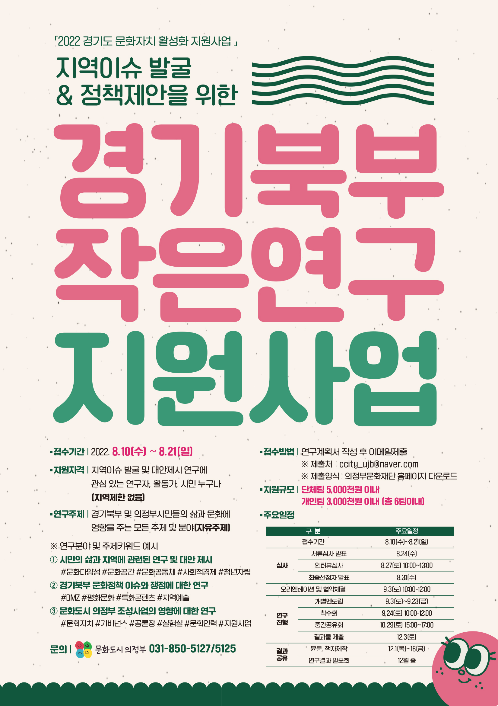 - [(재)의정부문화재단] 2022 경기북부 작은연구 지원사업 안내