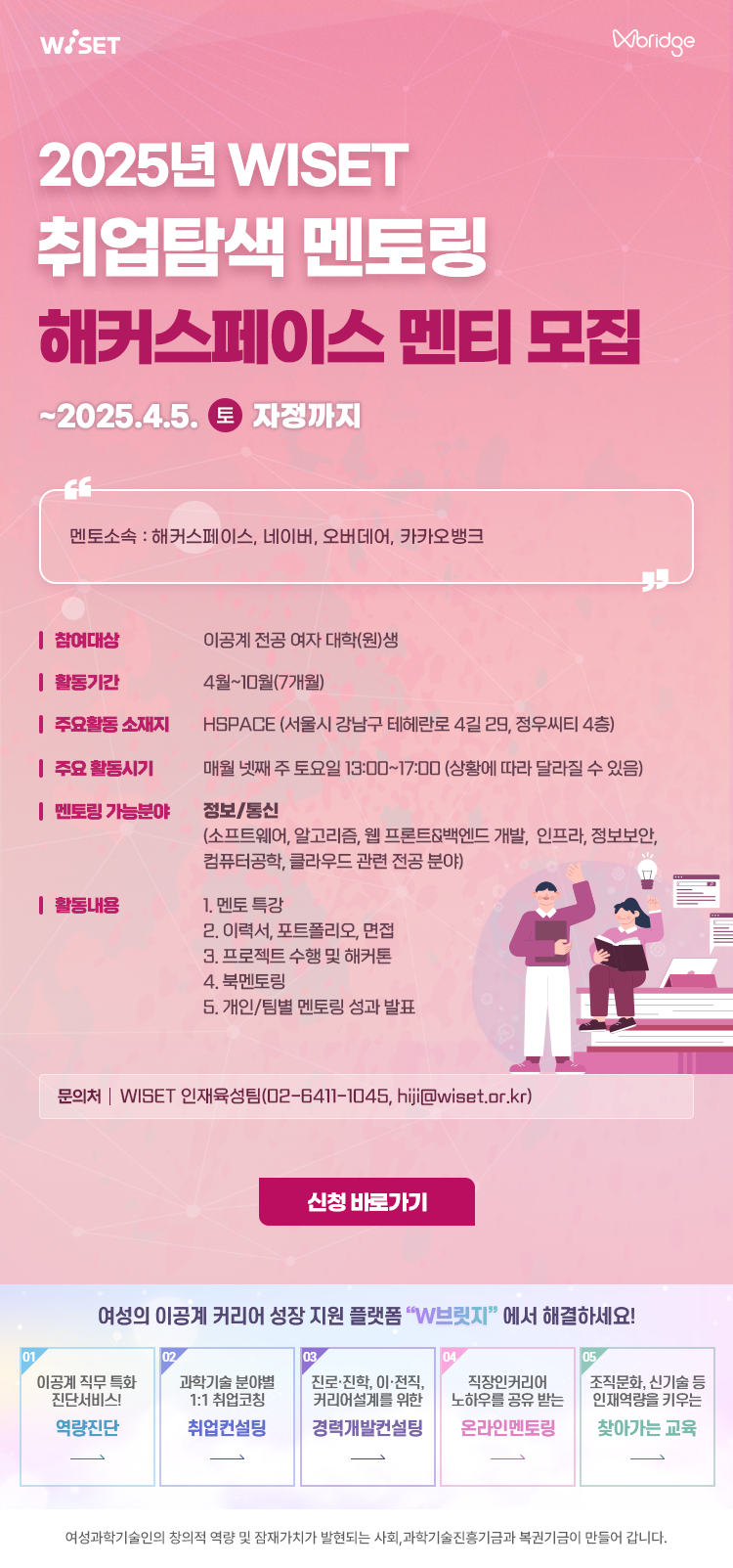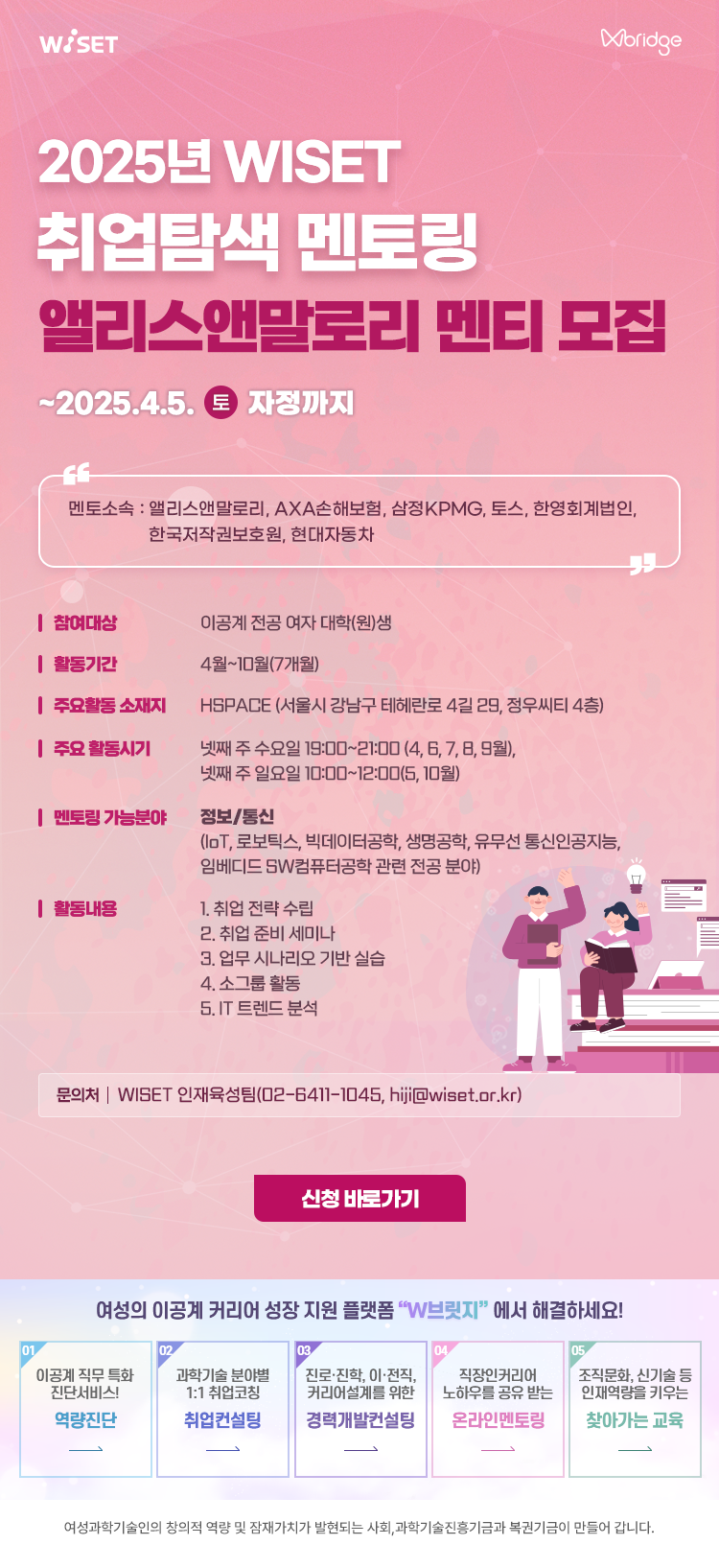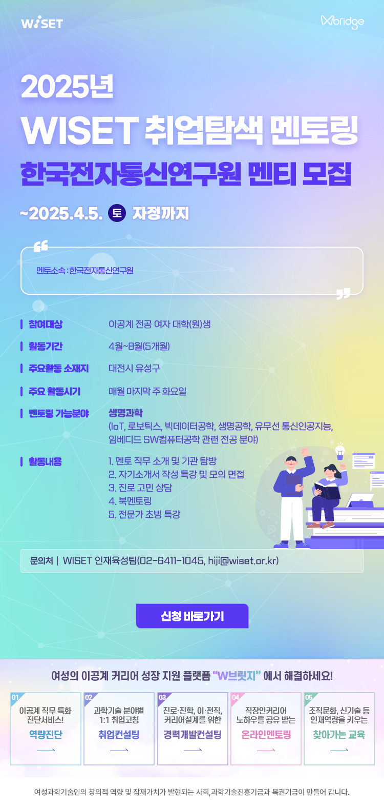 - [기타] [전체대학원] 2025년 WISET 취업탐색 멘토링 참여 이공계 대학(원)생 멘티 모집 홍보
