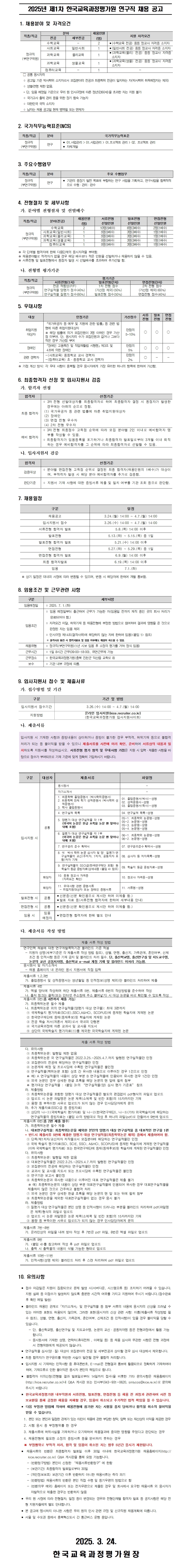 - [기타] [전체대학원] 한국교육과정평가원 연구직 신규채용 홍보