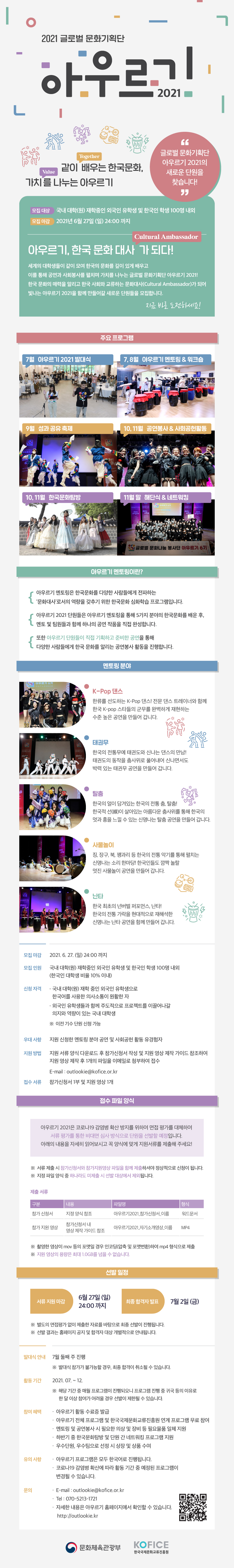 - [생활] 한국국제문화교류진흥원 글로벌 문화기획단 아우르기 2021 단원 모집 안내