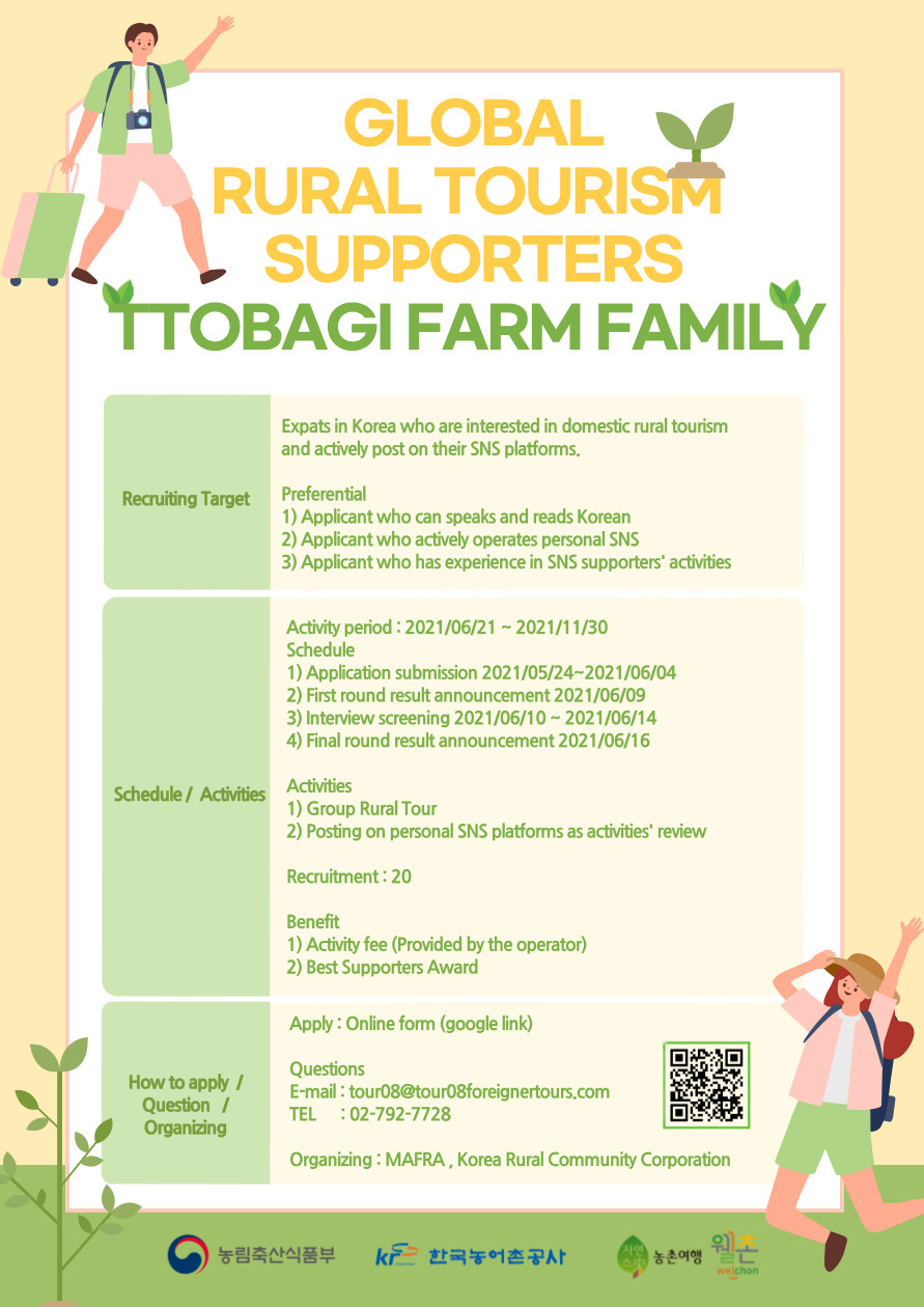 - [한국농어촌공사] 2021년 글로벌 농촌관광 서포터즈 모집 안내
